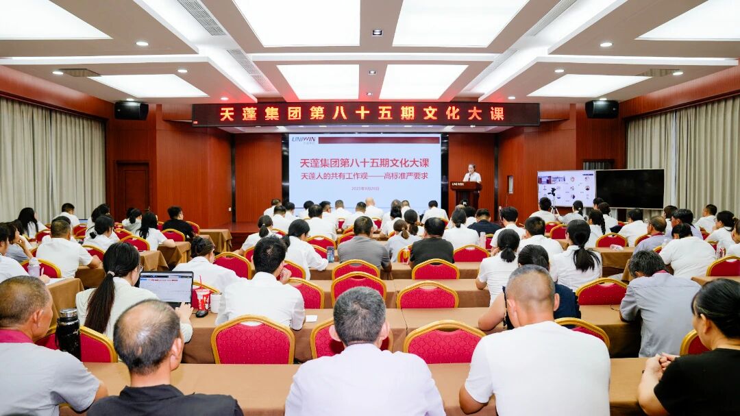 9月26日,天蓬集团第八十五期文化大课在浙江天蓬农业发展有限公司总部六楼会议室举行。本次文化大课以天蓬人的共有工作观——高标准严要求为主题,各部门、各子公司人员现场参会,下属各养殖事业部通过远程视频连线同步参加。会议由人力资源部副经理戴玉燕主持。